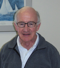 Lou Pinho fits a bronze chafing strip to the bottom of a rebuilt Bateka dinghy.